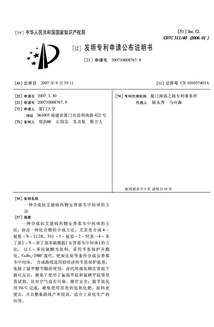 乙酸叔丁酯在 安普那韋 中的應用(一種合成抗艾滋病藥物安普那韋中間體的方法--廈門大學)